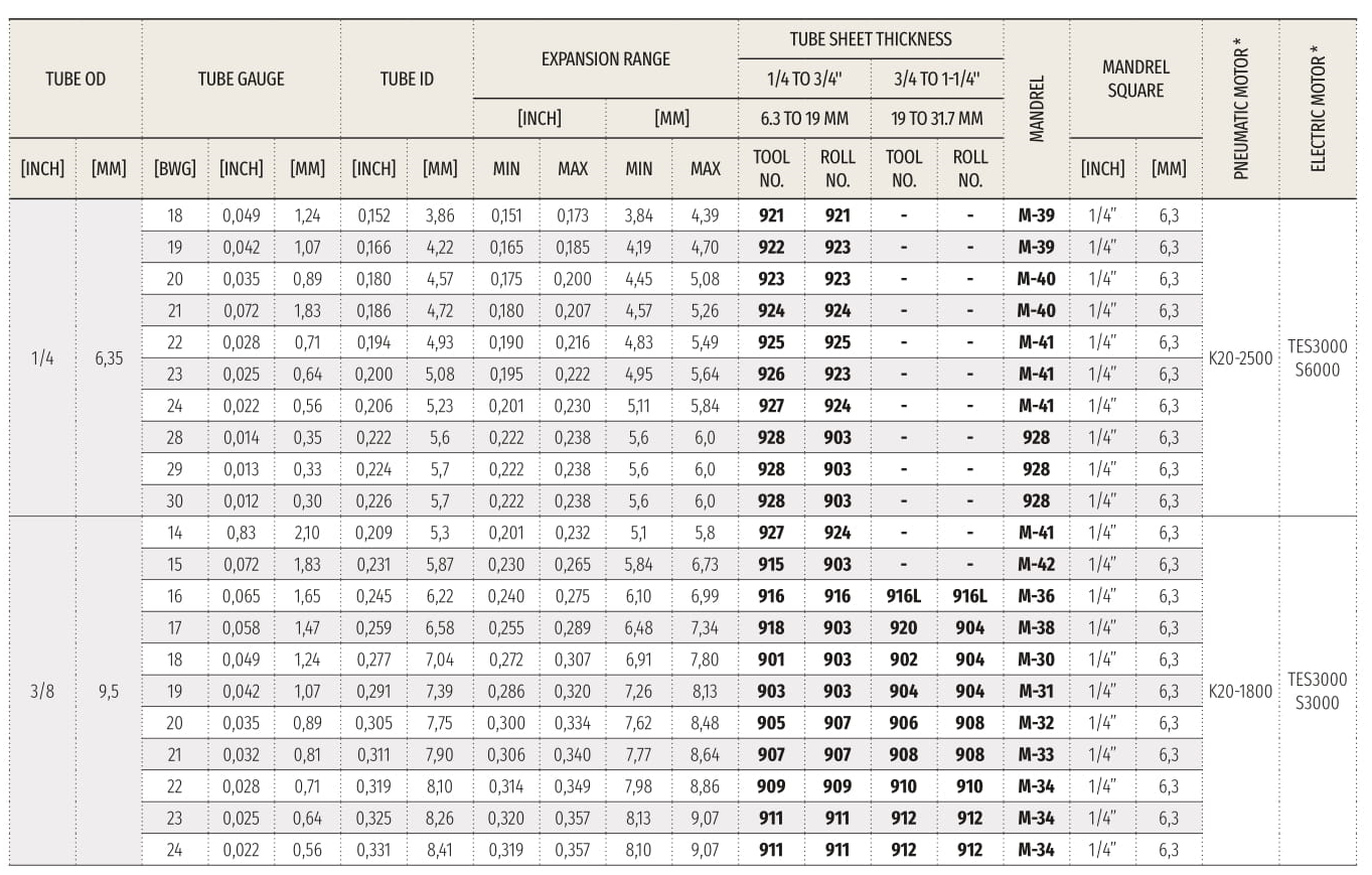 Bảng tra thông số đầu nong ống Krais 900 Series