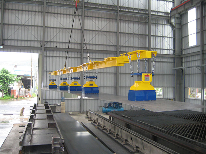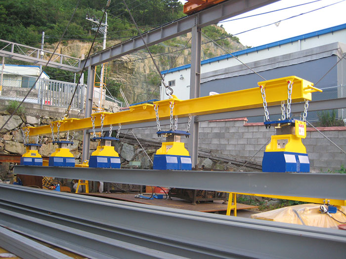 • Có thể gắn nhiều nam châm lên một dầm để cùng lúc hút và di chuyển các tấm thép lớn hoặc nhiều vật liệu – tối ưu cho nhà máy thép, đóng tàu, kho vận lớn.