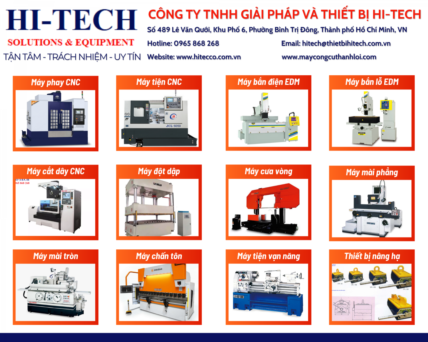 Hi-Tech là đơn vị chuyên cung cấp máy CNC, thiết bị gia công cơ khí và giải pháp tự động hóa, với cam kết mang đến hiệu quả sản xuất tối ưu cho các doanh nghiệp tại Việt Nam.